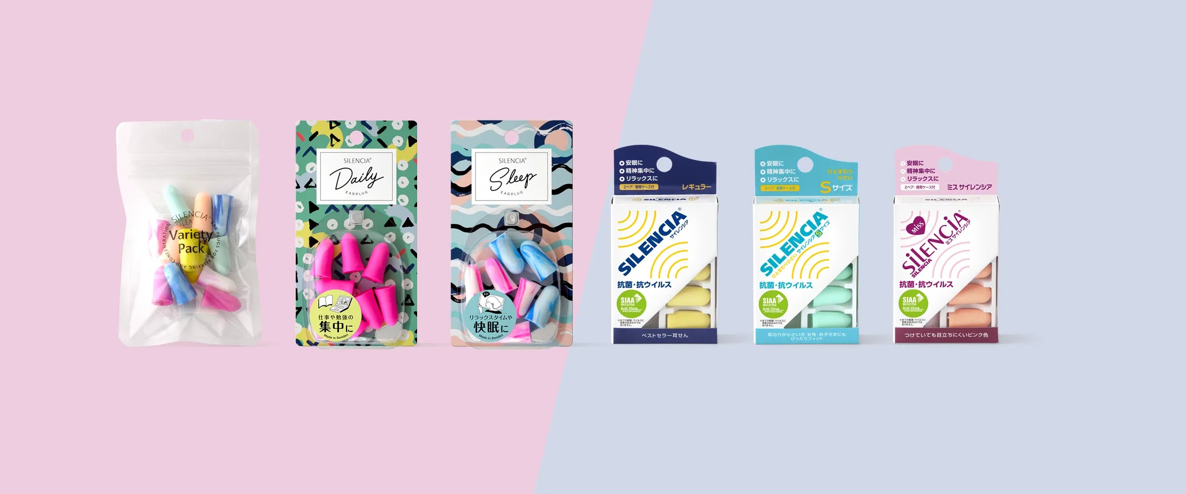 サイレンシア®で人気の6種類の耳せんをワンパックにしました。耳の穴のサイズには個人差があります。